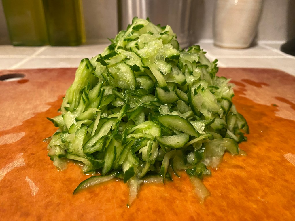 - 4 Persian Cucumbers, or 1 English Cucumber, about 2 cups grated