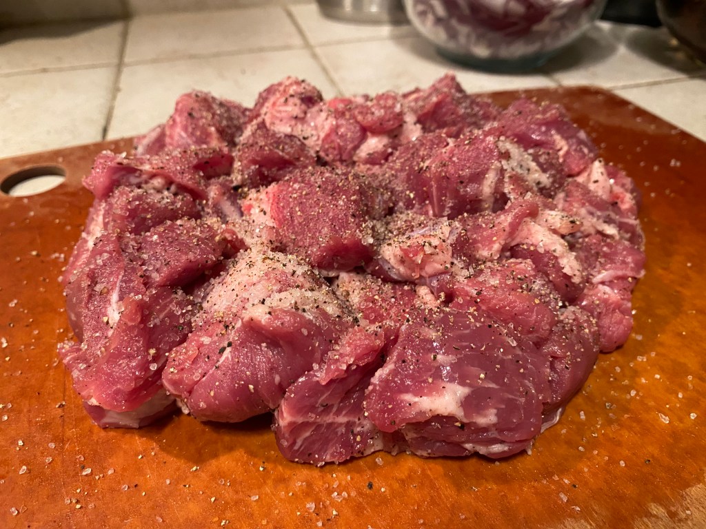 - 2 lbs. Pork Shoulder – cubed 1.5 inch pieces