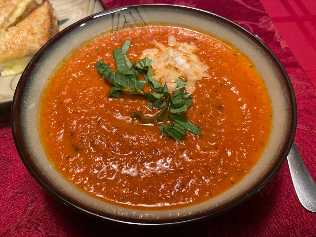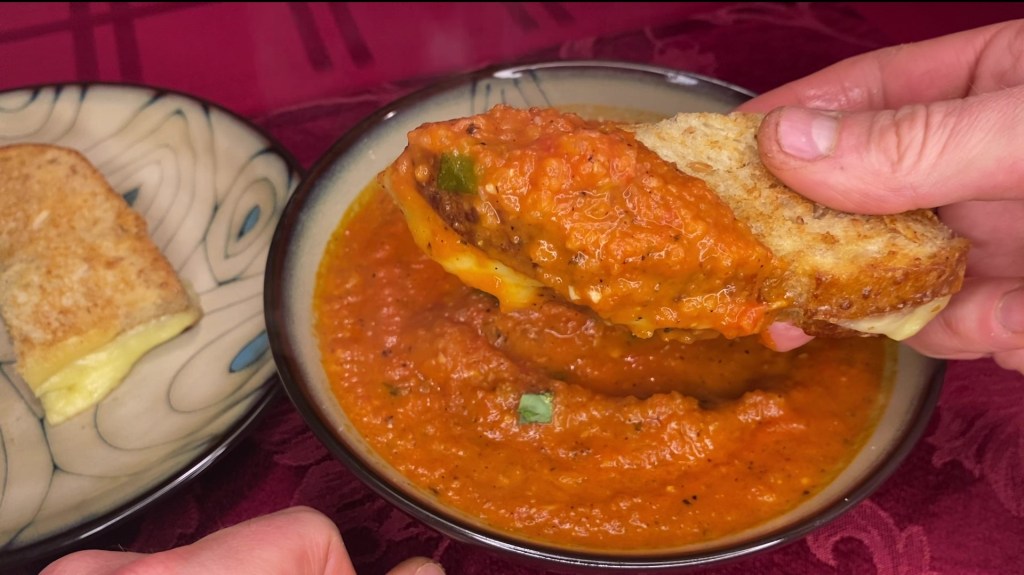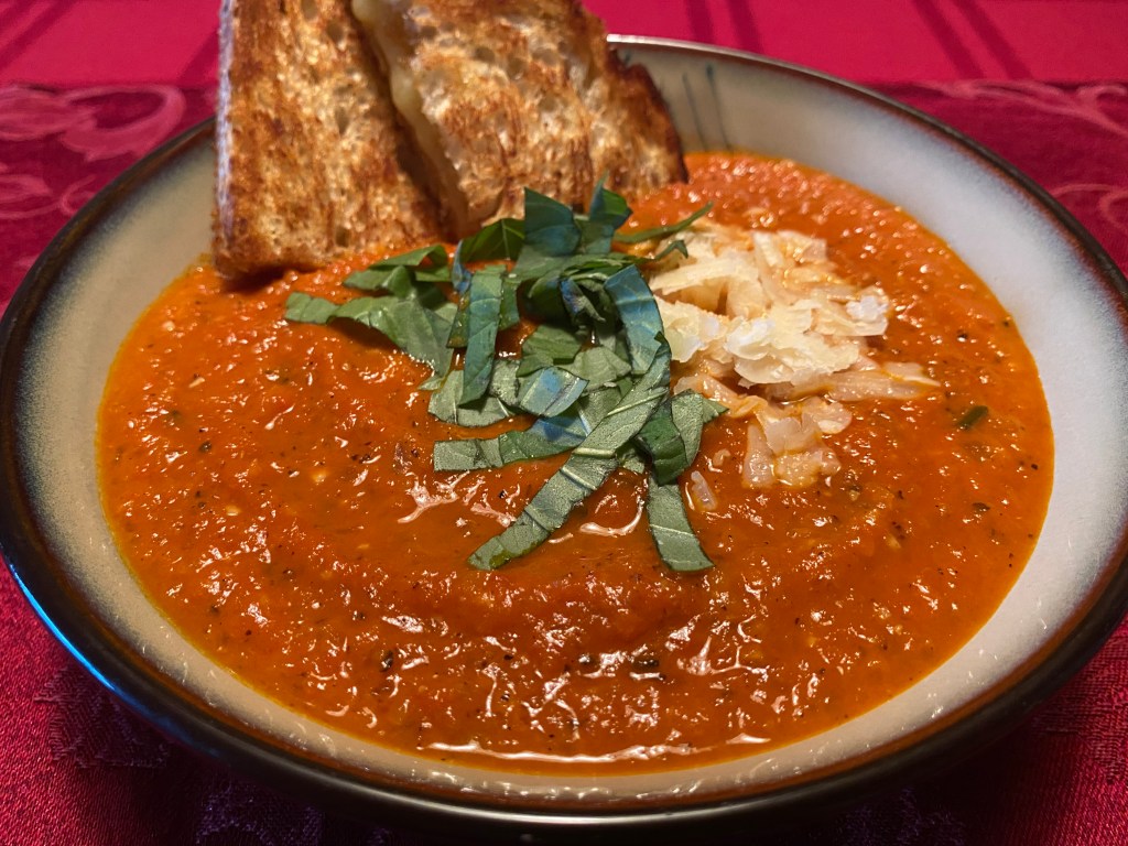 Thick & Chunky Fire-Roasted Tomato Soup and Grilled Cheese – AKA: Just Like Your Mom Used to Make…But Better!